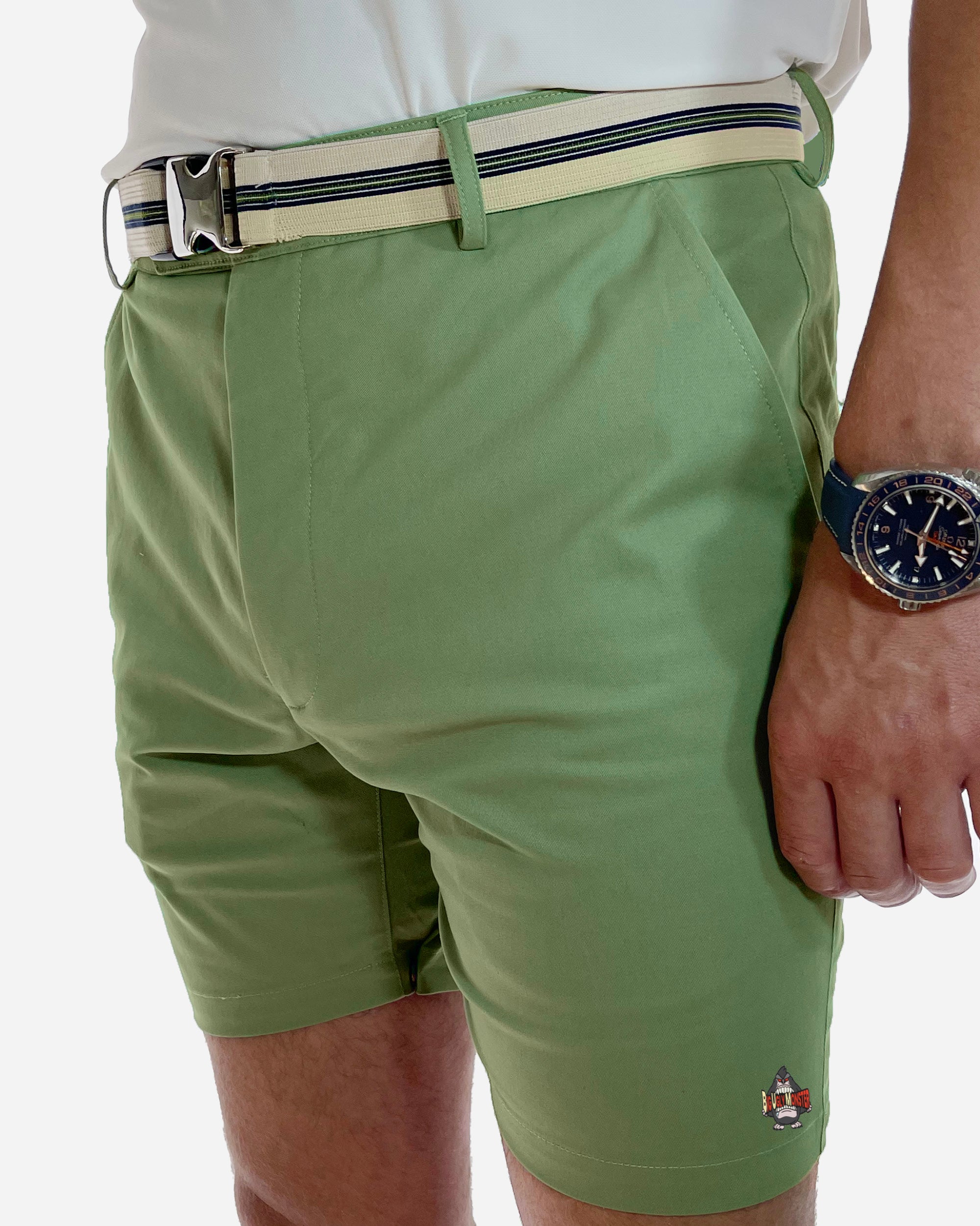 These shorts will feel comfortable and allow leg movement whilst still looking fitted. The coordinated belt is made from elasticated fabric and discreet fasteners located in the inside leg allow adjustment to create a fitted athletic look on the slimmest of legs or looser casual relaxed look.