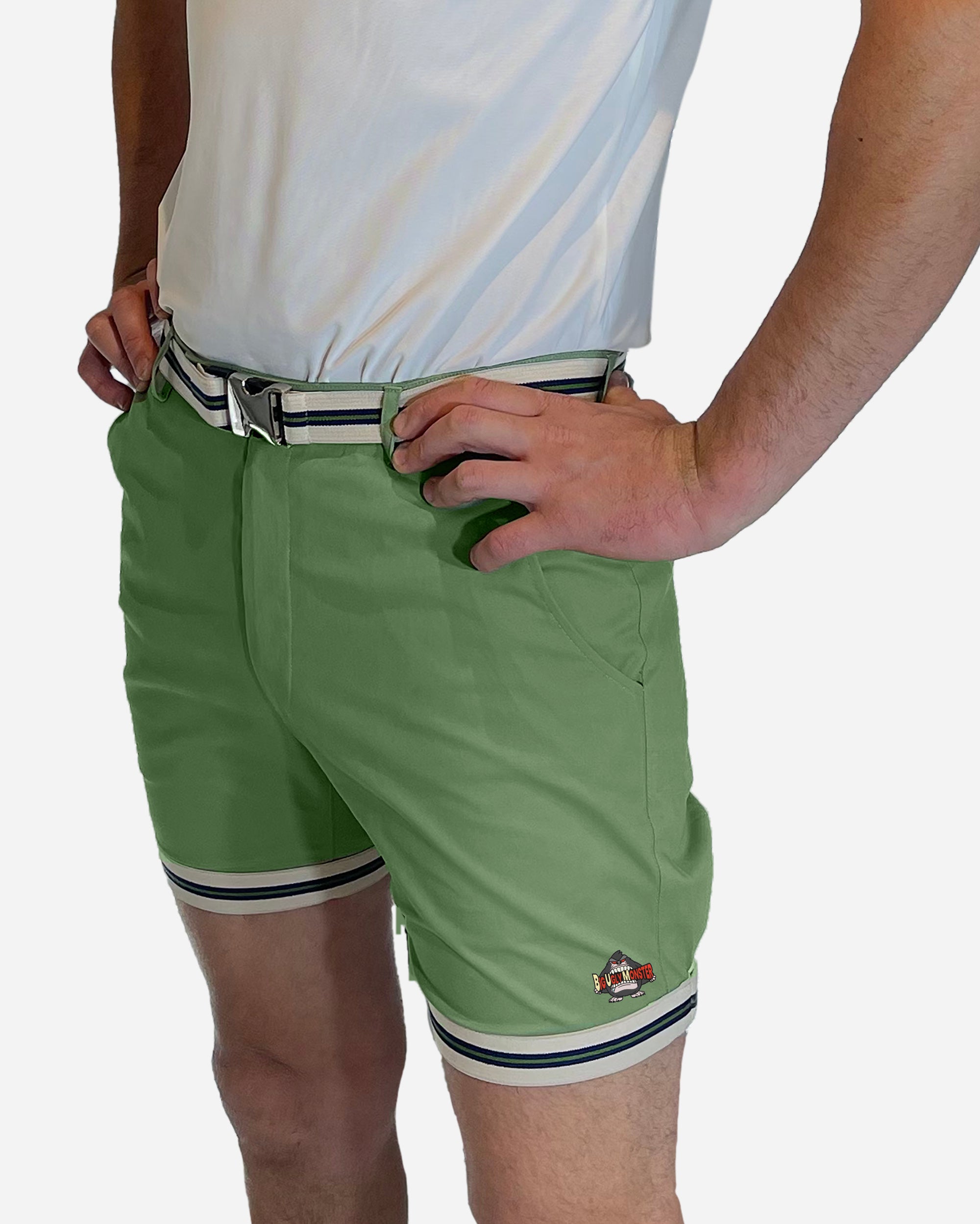 Men's mid-length stretch shorts with matching belt. Model size Medium. Made from a soft yet robust, unique blend of Cotton and Elastin 80/20.