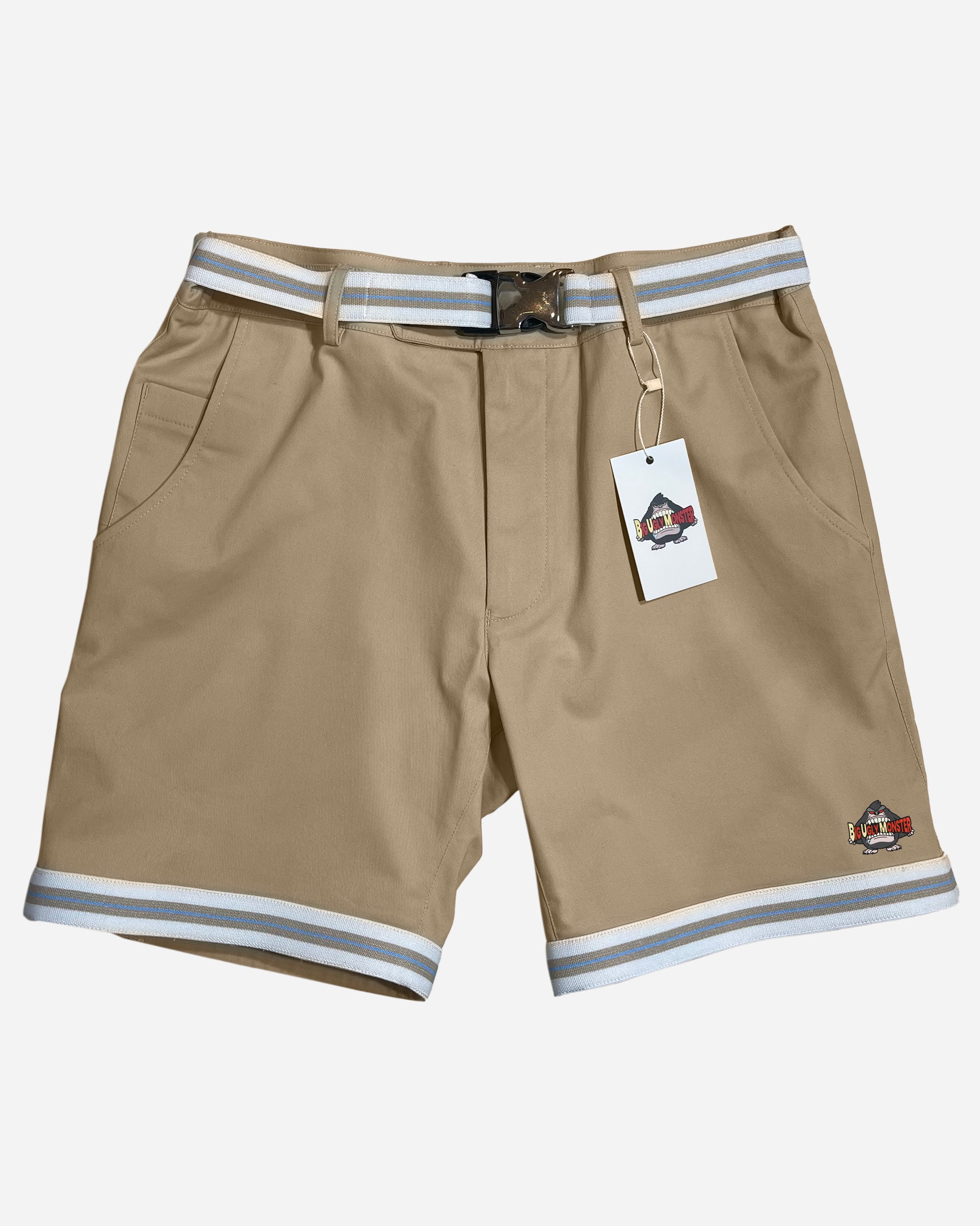 Men's mid-length stretch shorts with matching belt. Model size Medium. Made from a soft yet robust, unique blend of Cotton and Elastin 80/20.