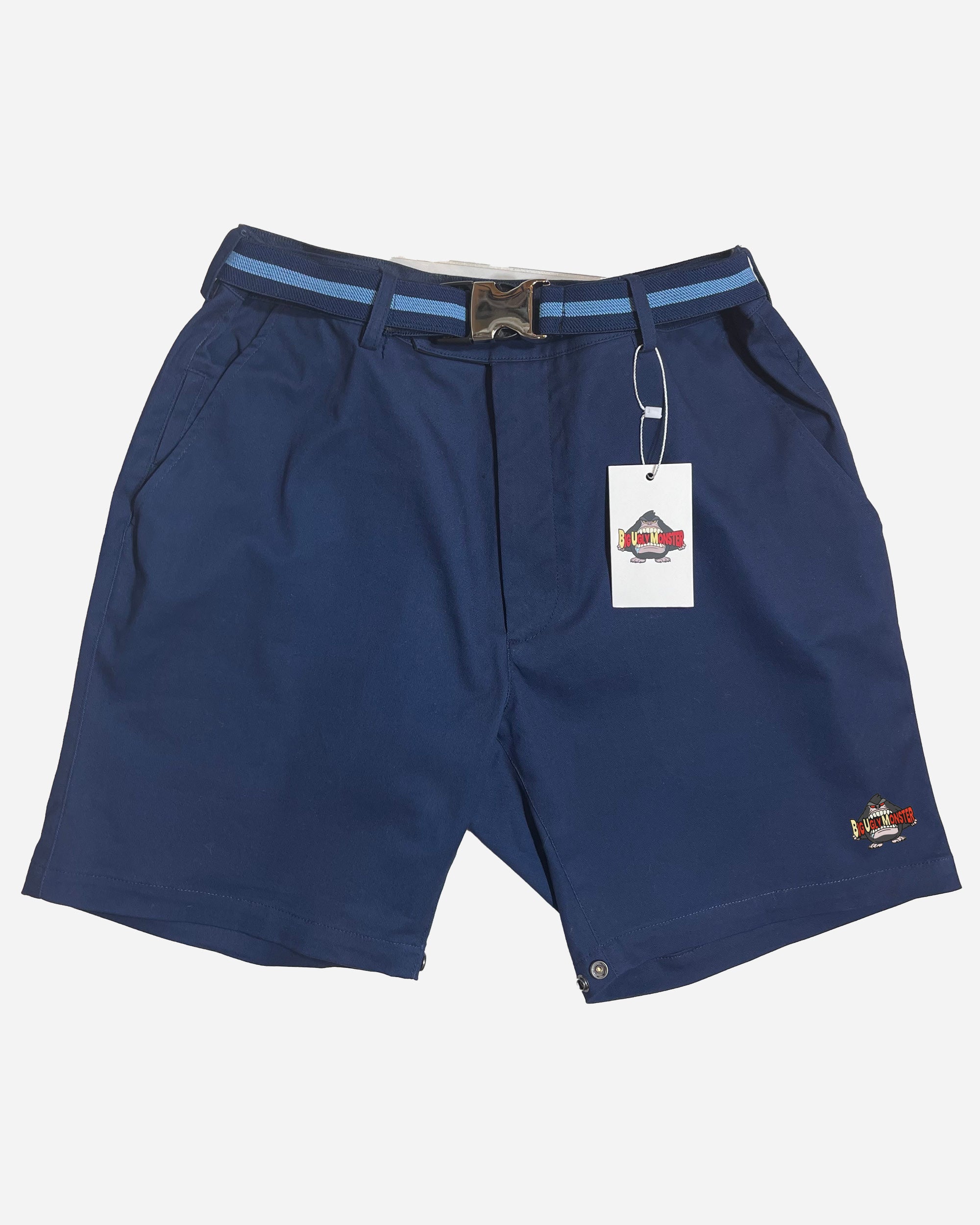 Men's mid-length stretch shorts with matching belt. Model size Medium. Made from a soft yet robust, unique blend of Cotton and Elastin 80/20.